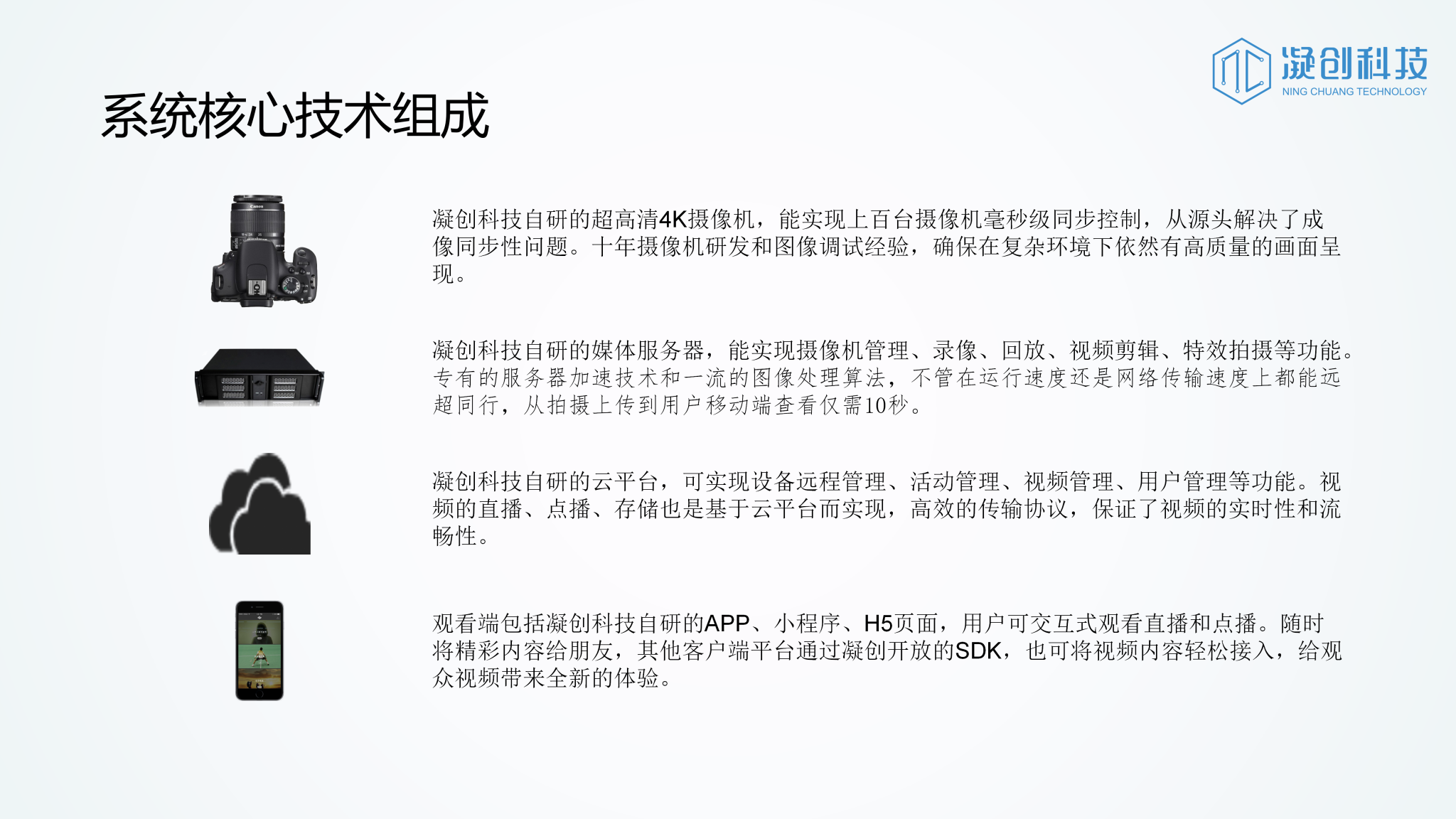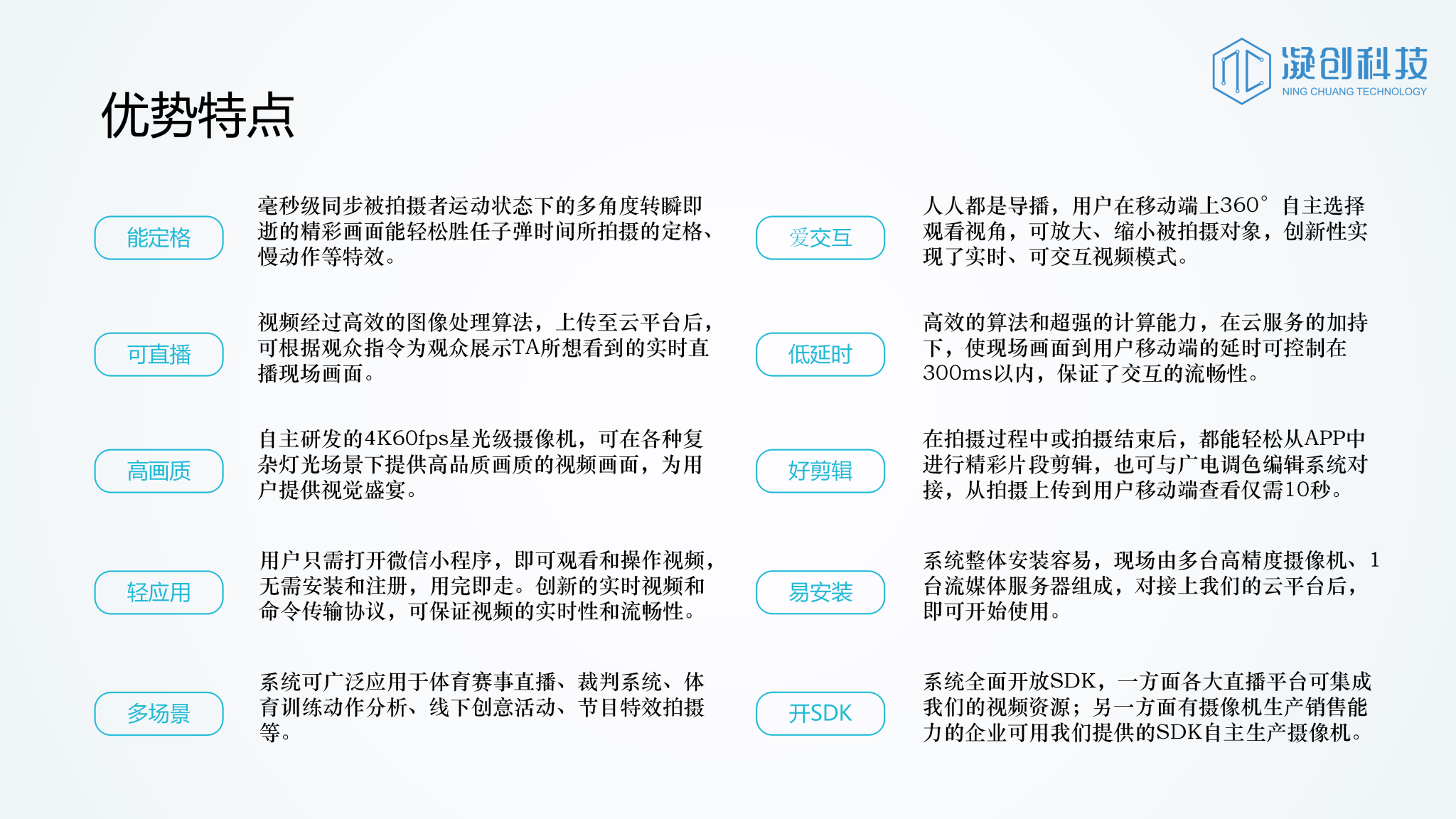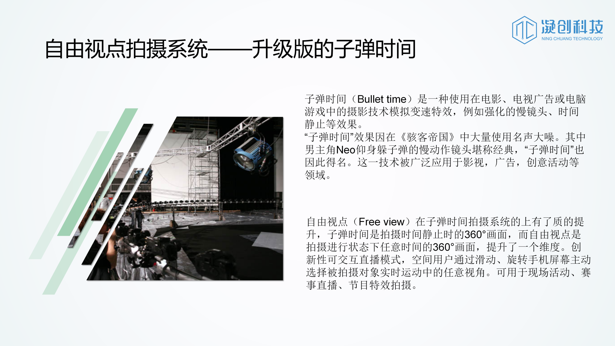 作为湖南广播电视台的合作伙伴,凝创科技为时空凝结系统提供技术支撑,该系统可拍摄定格和慢动作特效,从拍摄到云端分享仅需10秒。
